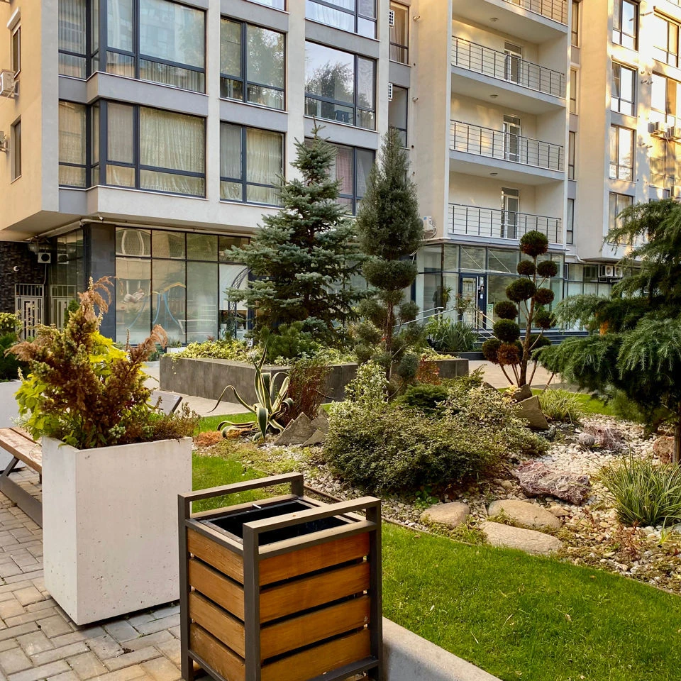 Curte inchisa cu design peisajistic — zona dumneavoastra de liniste in centrul sectorului.