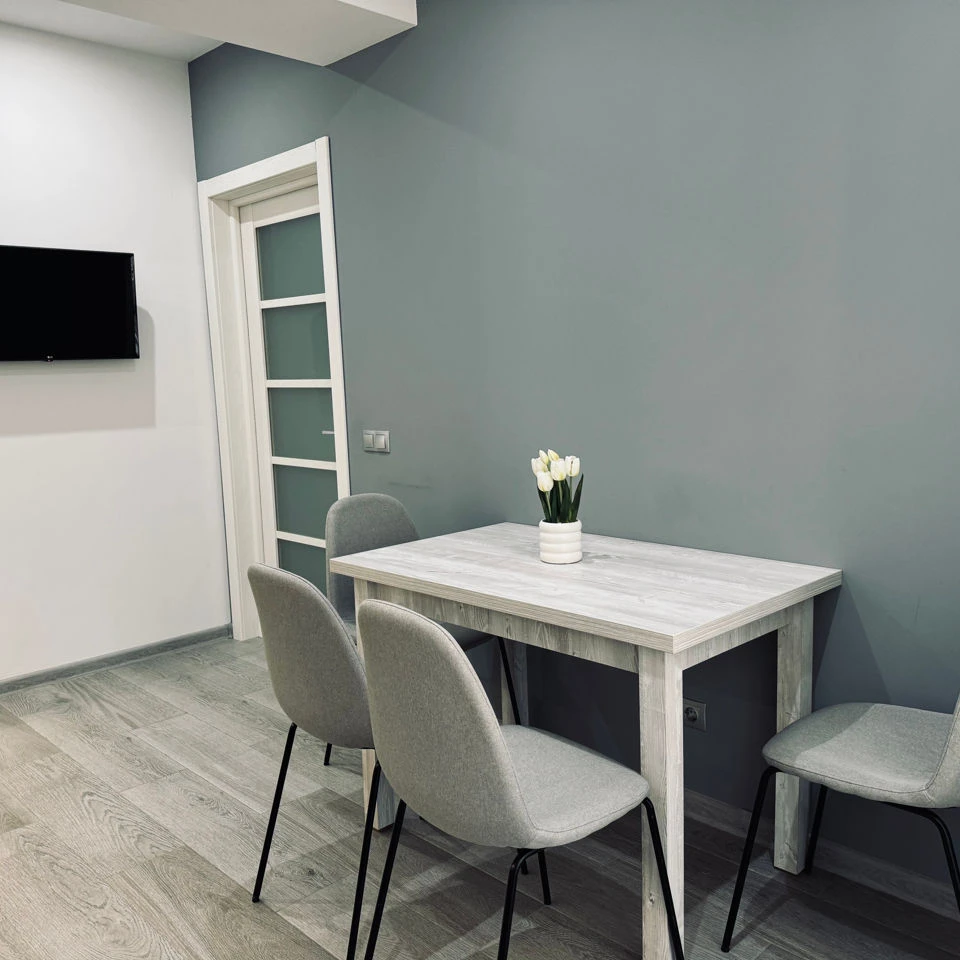 В квартире есть постельное белье, полотенца, посуда.