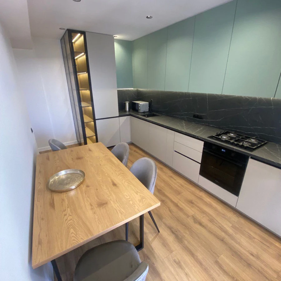 Balcon la bucătărie și priveliște panoramică în living.