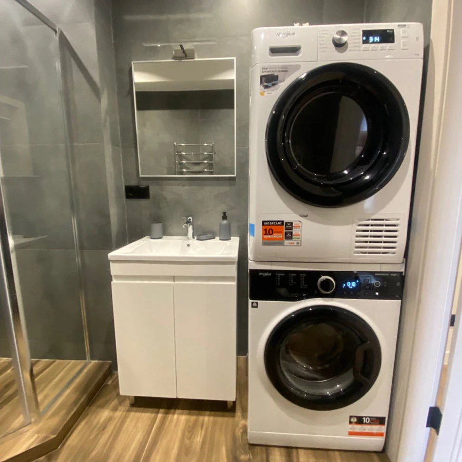 Frigider , microunde , mașină de spălat veselă, fierbător, mașină de spălat haine, mașină de uscat hainele, aspirator.