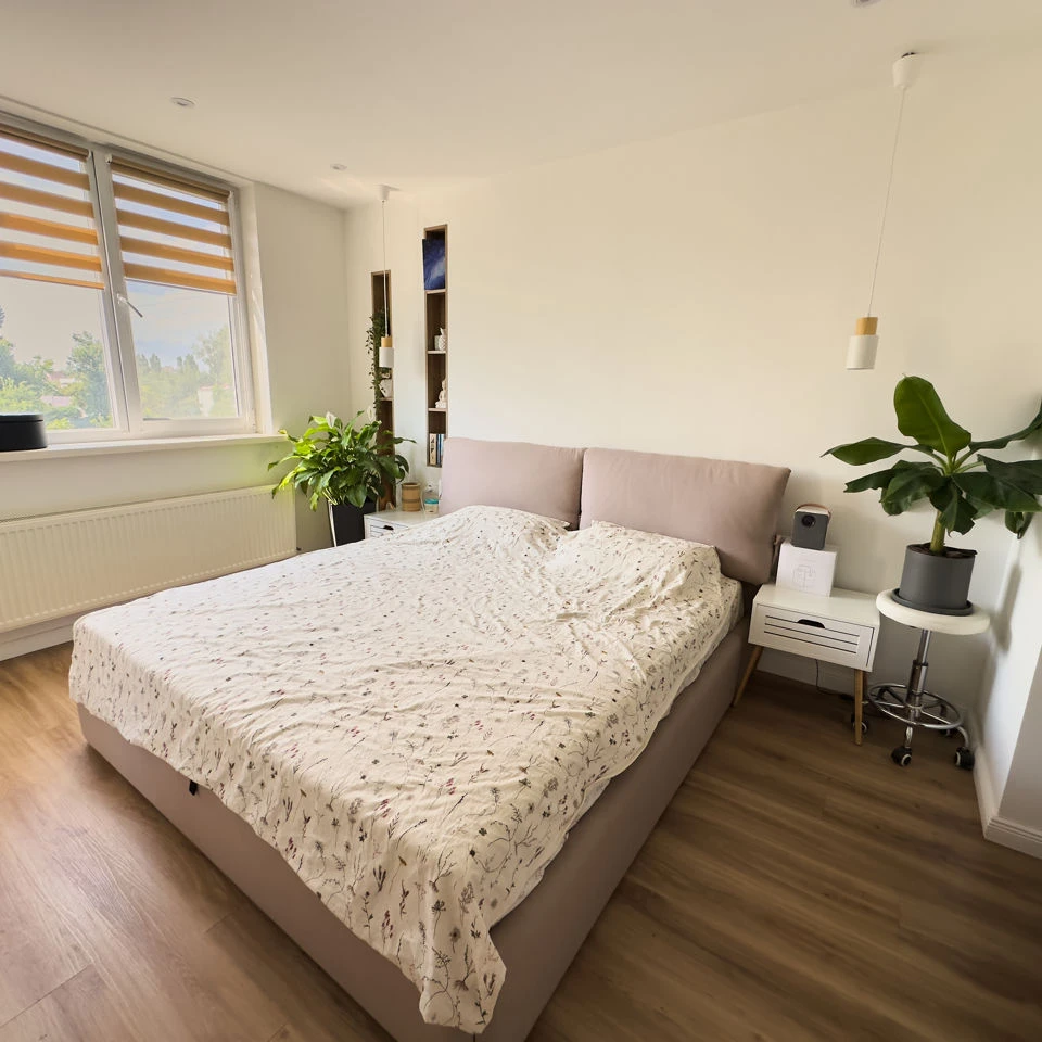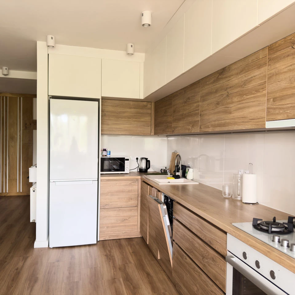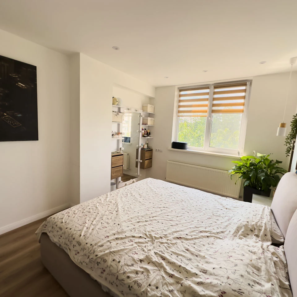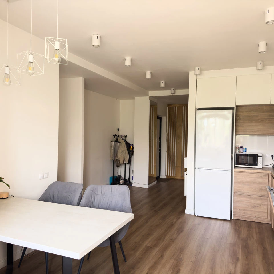Дизайнерская квартира в самом необычном доме Кишинева. Квартира 50кв на 4-ом этаже. Выйдя из лифта вы попадаете в атриум с большим количества цветов и света. Сама квартира так же светлая, теплая и имеет звукоизоляцию. В квартире большая кухня с посудомойкой. На закрытом балконе рабочее место с диваном. В спальне большая и удобная кровать, зеркало с полочками для девушки и большая гардеробная. В спальне есть проектор, который подключается к телефону, его можно по желанию перенести в любое другое место.