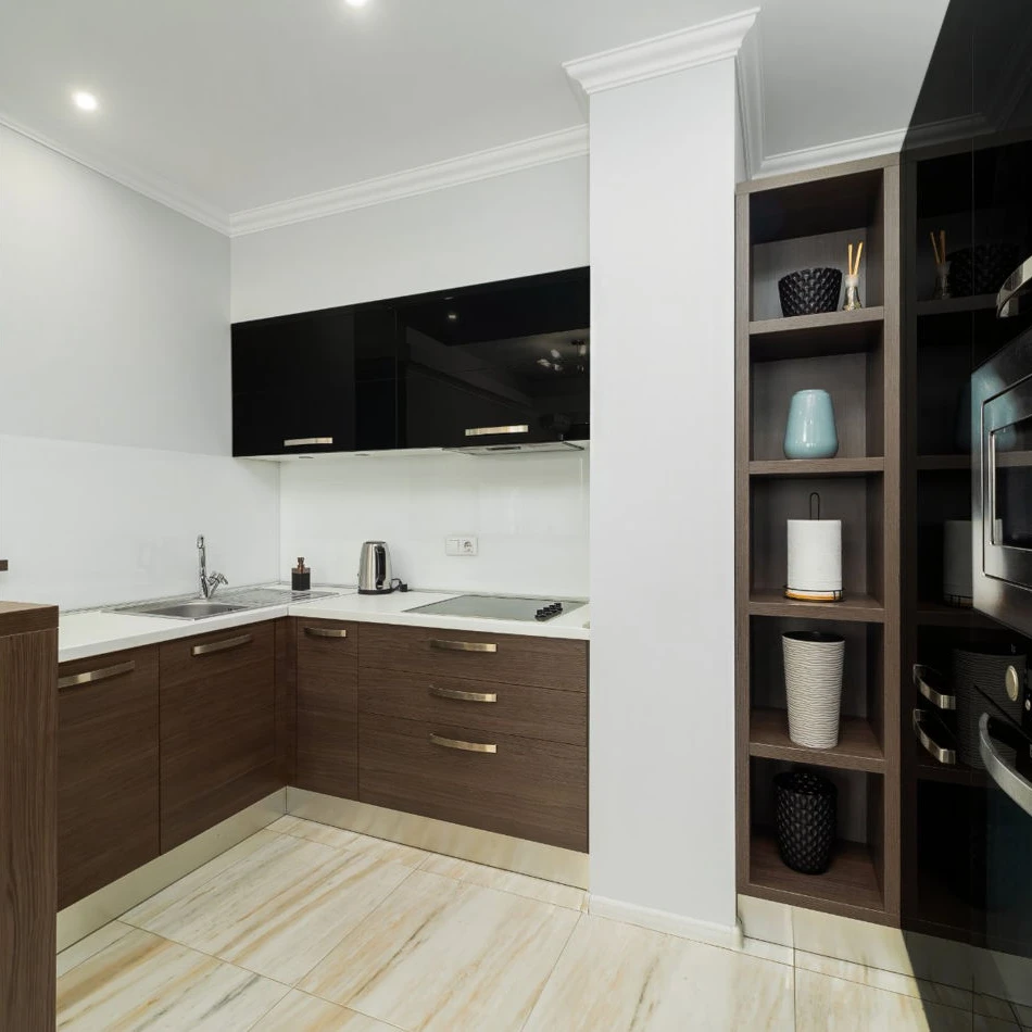 - микроволновая печь, плита, духовка, встроенный холодильник.