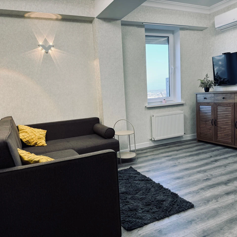 Квартира имеет 1 ливинг, 2 спальни, сан узел, большую кухню, лоджию.