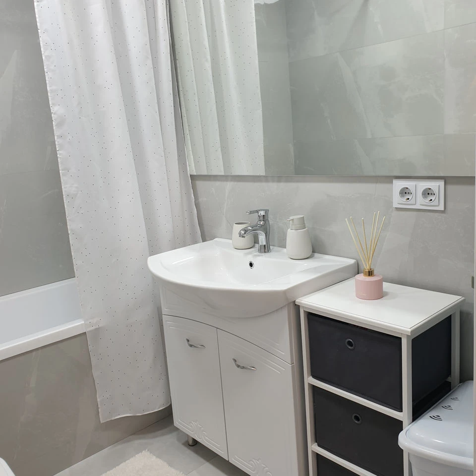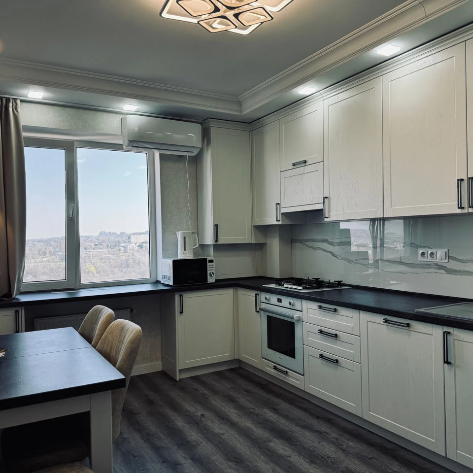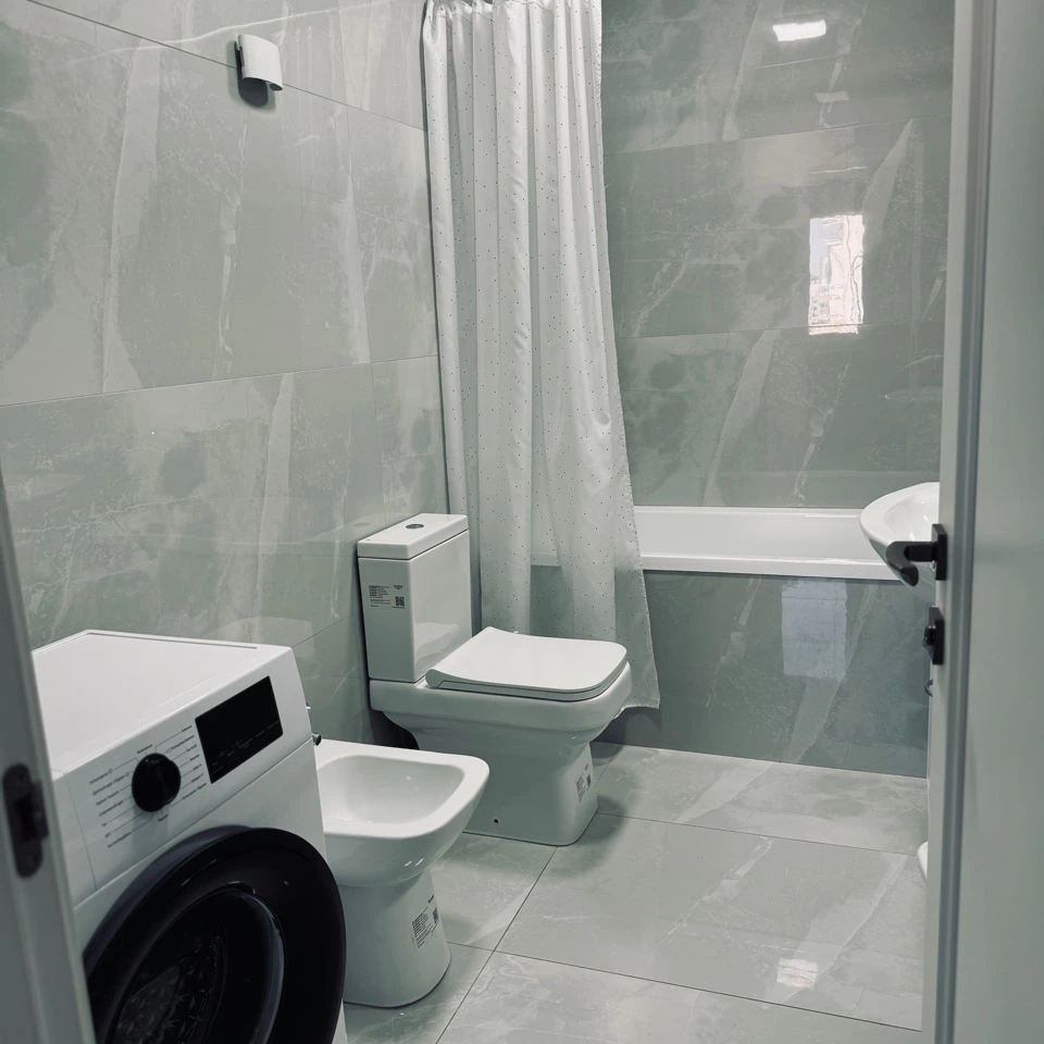 Квартира оснащена всей необходимой кухонной утварью и техникой (стиральная машина, холодильник, вар поверхность, духовой шкаф, микроволновая печь, 2 телевизора, утюг, чайник).
