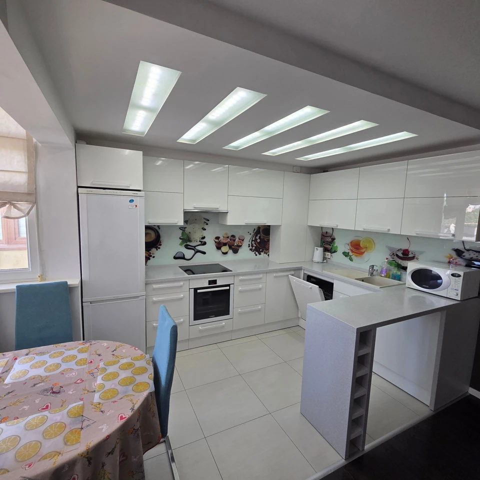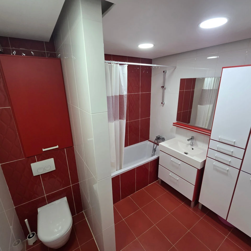 - Bucătărie utilată complet: frigider, plită, cuptor, cuptor cu microunde, mașină de spălat vase