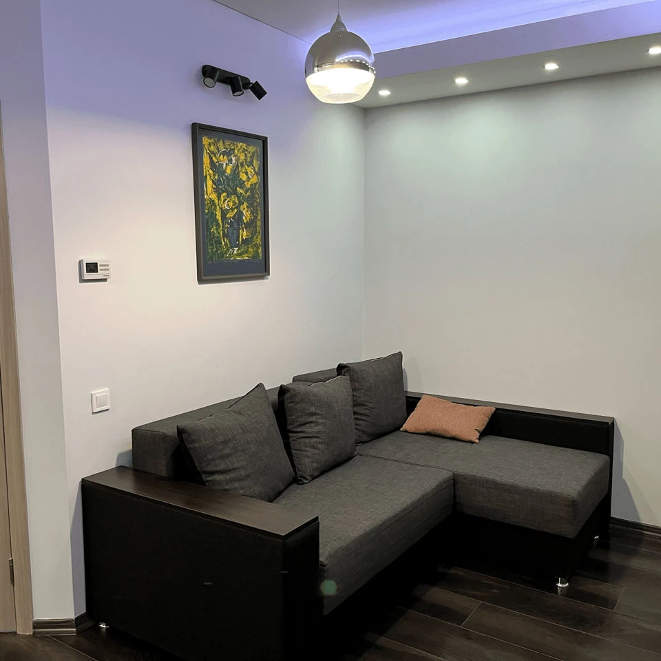 Planificare inteligenta: living primitor cu canapea extensibila de colt si un dormitor izolat.