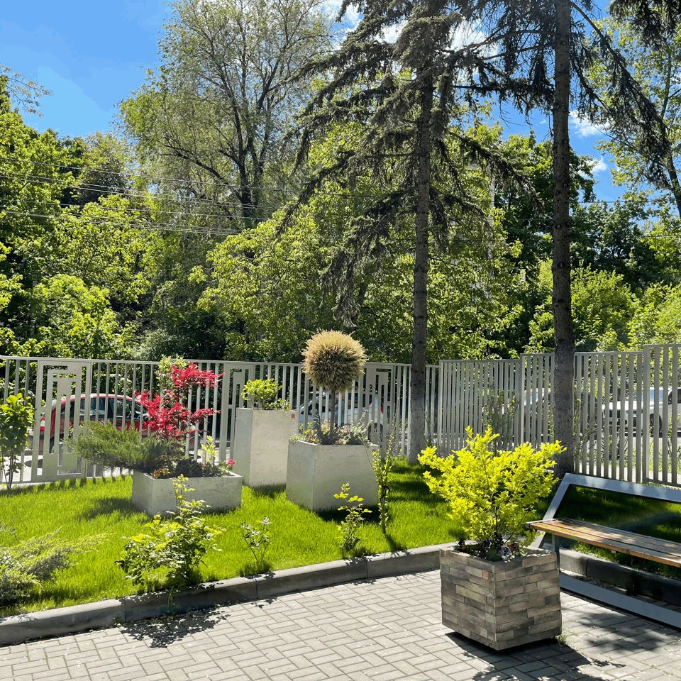 Curte inchisa cu design peisajistic — zona dumneavoastra de liniste in centrul sectorului.